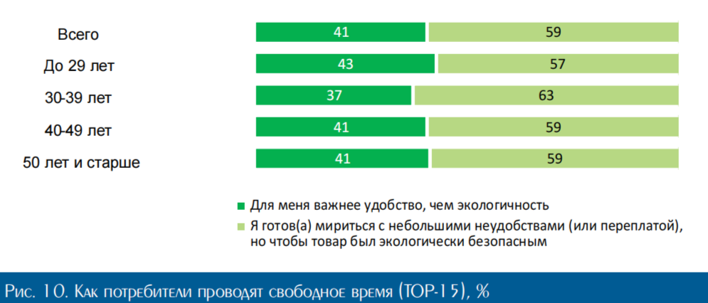 59 % потребителей молока готовы мириться с небольшими неудобствами (или переплатой), но при условии, чтобы товар был экологически безопасным (рис. 10). Данный факт полностью подтверждает приоритет жизненных ценностей целевой аудитории с акцентом на здоровье, так как экологичность – это среди прочего и здоровье потребителя и его семьи.