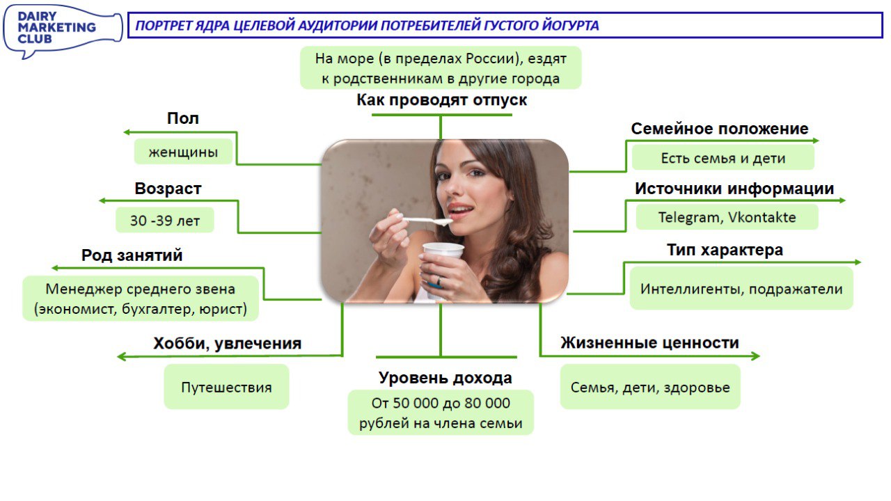 Женщины, 30-39 лет, есть семья и дети, род занятий: менеджеры среднего звена, уровень дохода от 50 до 80 т.р. на члена семьи.