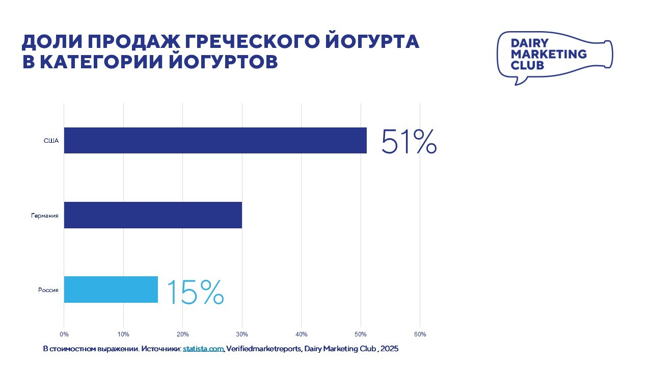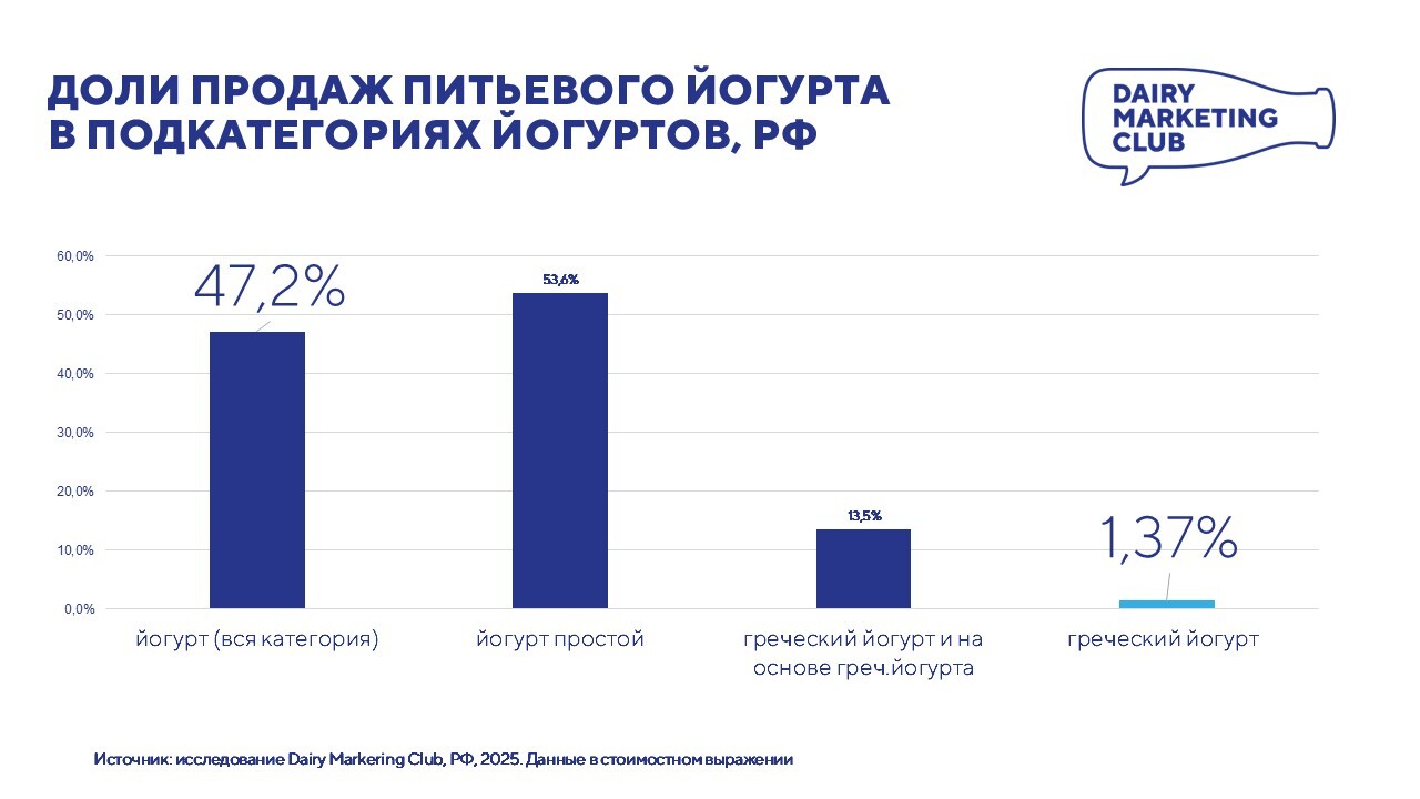 В статье представлен фрагмент кабинетного исследования рынка греческого йогуртов, выполненного Dairy marketing club в 2025 г.